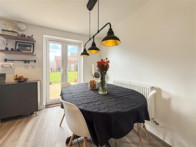 The dining area is a good size with plenty of room for a family table and chairs, radiator and French doors opening onto the South facing rear garden.