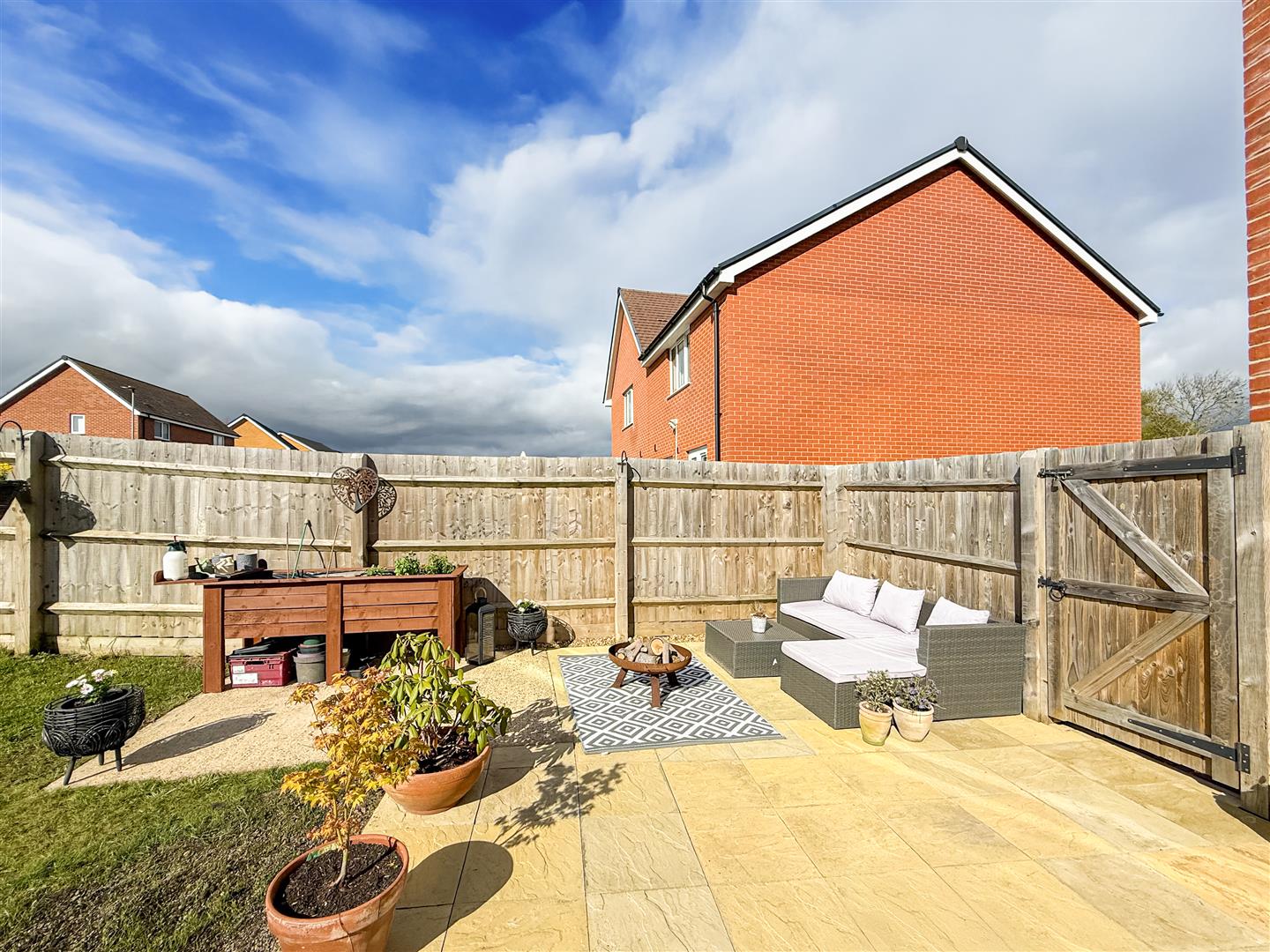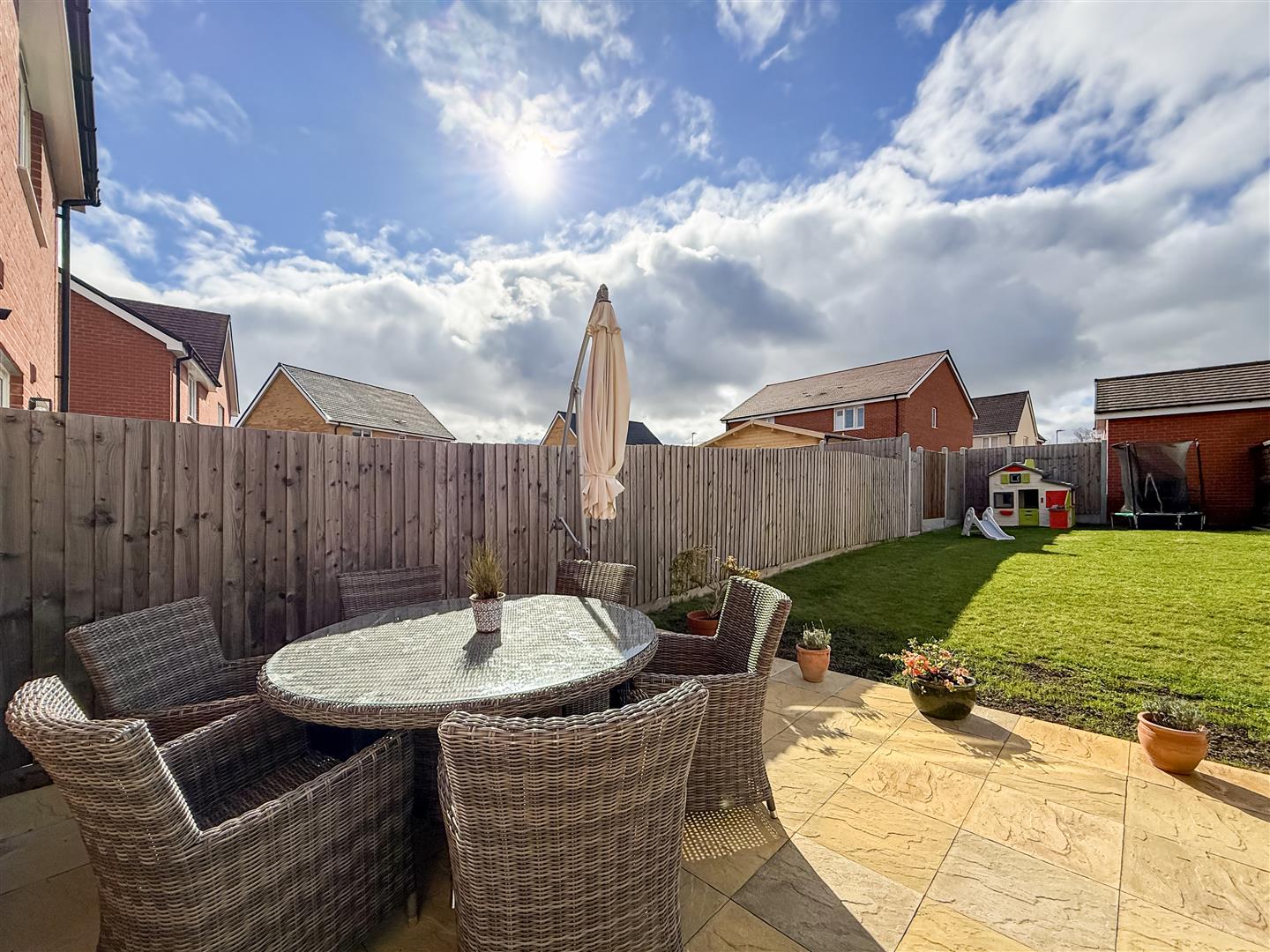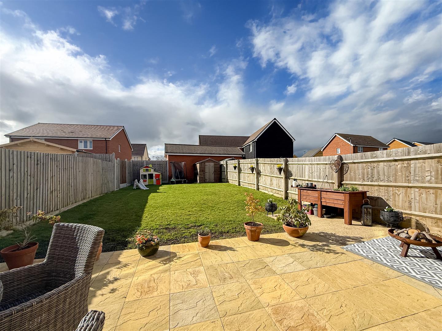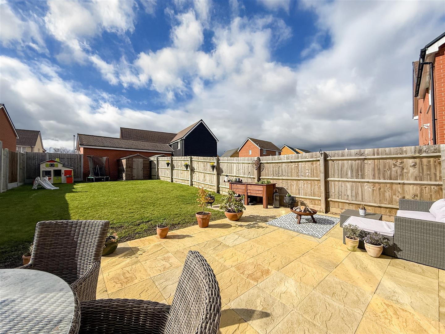 The property is one of only a few with a larger garden and if you enjoy the sun and your outside space, this certainly will tick the boxes for you. Commencing with a generous patio/entertaining area, water tap and side access gate to the front, neatly laid to with close board fenced boundaries.