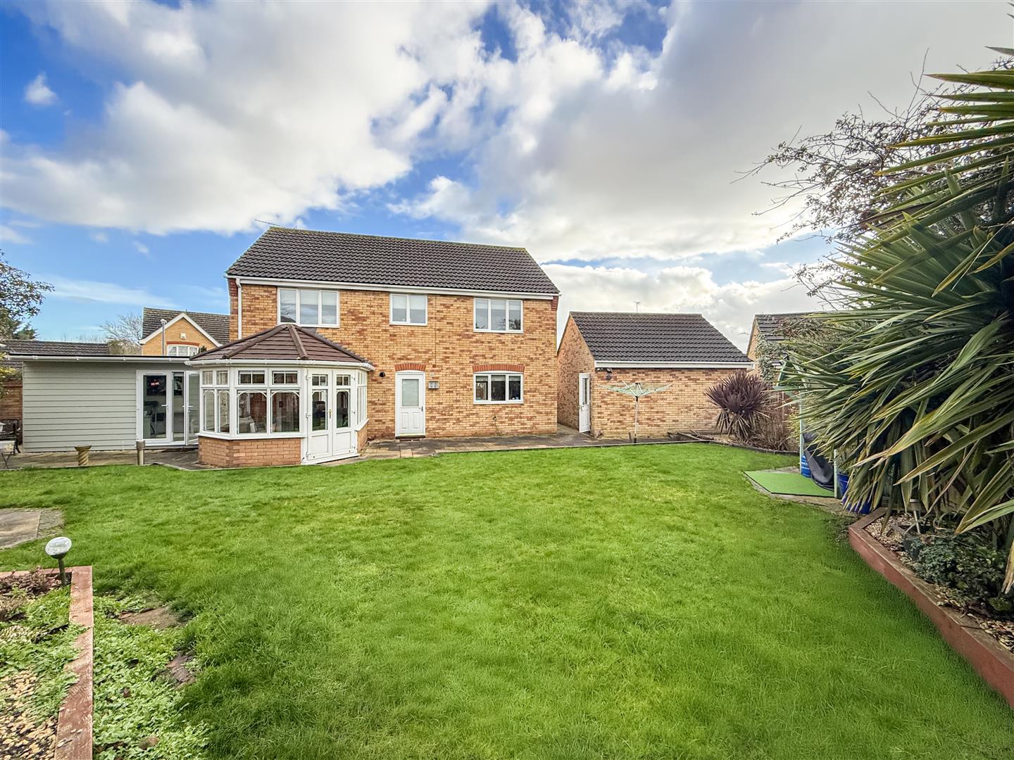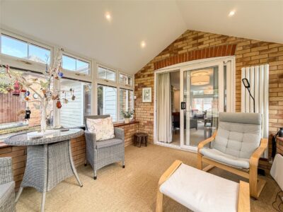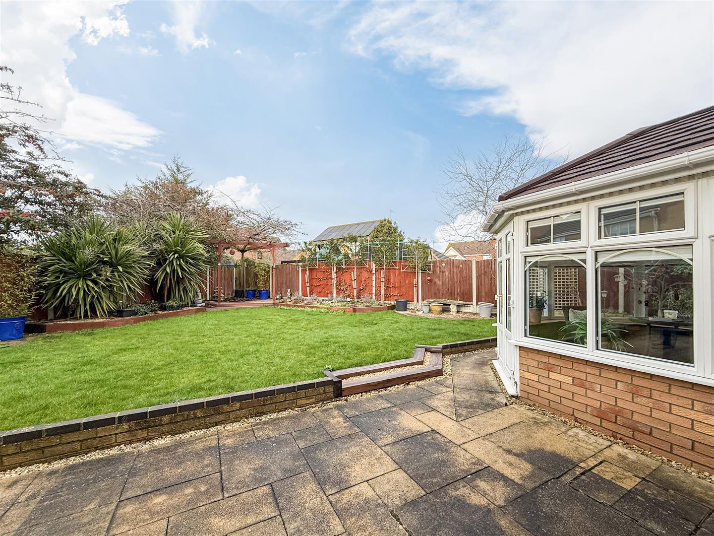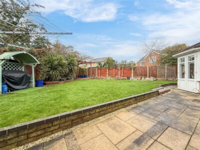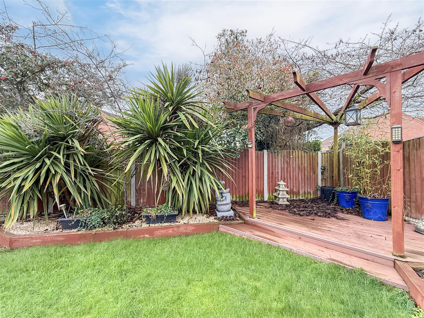 If you enjoy your outside space, the sunshine and entertaining then this generous West facing garden, will hit the spot. Commencing with a good size patio/entertaining area, water tap, path and double side gates to the front and courtesy door to the double garage. The garden is neatly laid to lawn with surrounding planting, bbq area and a rear pergola seating area with decking, close board fenced boundaries.