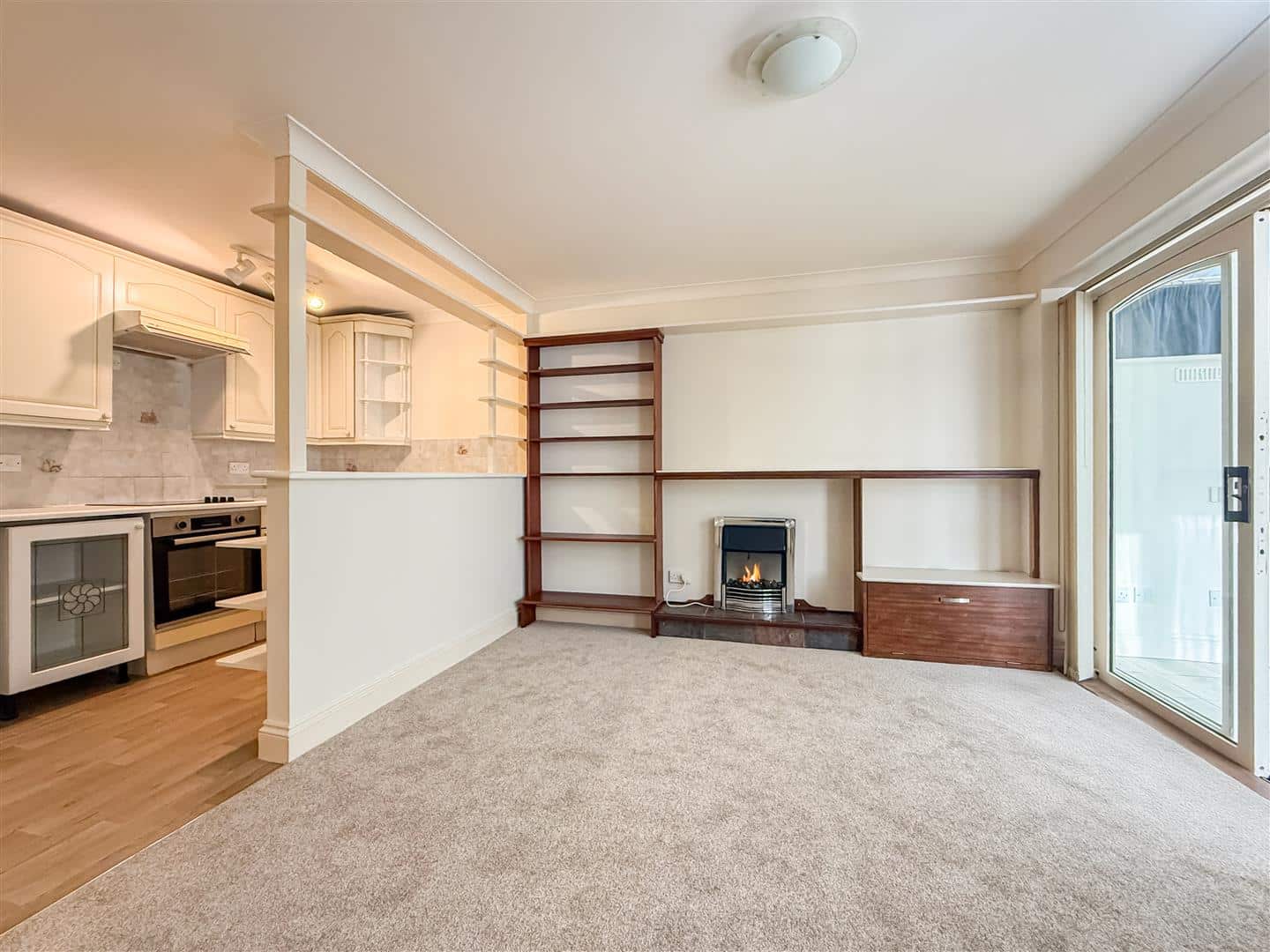 The lounge again is a good size and open plan to the kitchen/dining area, feature fireplace with electric fire and built in shelving with space for a television. Wall mounted electric heater.