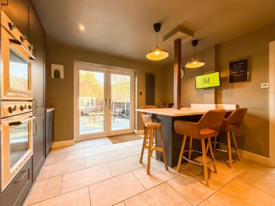 This is a lovely size room and as with the home throughout, is presented to an excellent standard. Dual double glazed windows to the front and a further double glazed window to the side with fitted blinds, bringing in plenty of natural light. Feature fireplace with an inset electric flame effect fire and above recess for tv/entertainment, radiator with decorative cover and a white column style radiator, double doors to the kitchen/dining room.