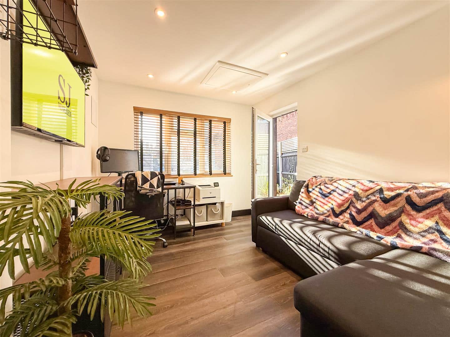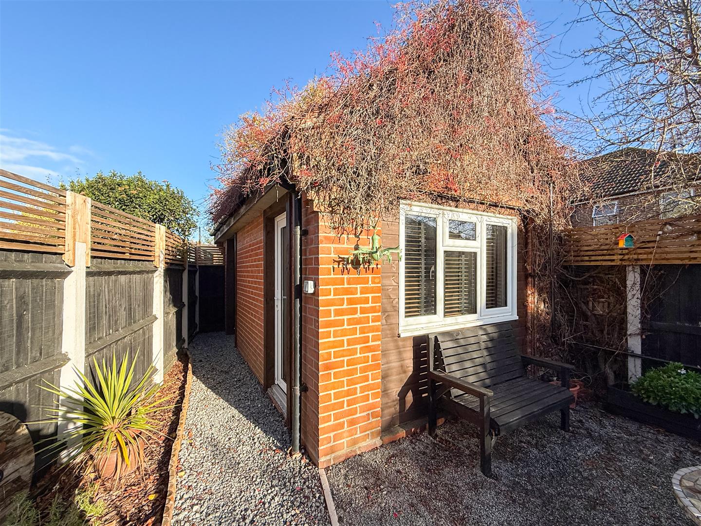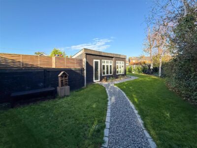 The garden commences with a large laid to shingle patio/entertaining area with close board fencing, covered outdoor sink area with cold running water and storage space, side gate to the front. There is a detached brick built office (ORIGINALLY THE GARAGE) this has quality laid wood effect flooring, fully insulated and plastered with a wall mounted electric heater, tv point, door to the side, double glazed windows to the front and rear with fitted blinds. Door to a extremely well fitted room (please see photography)