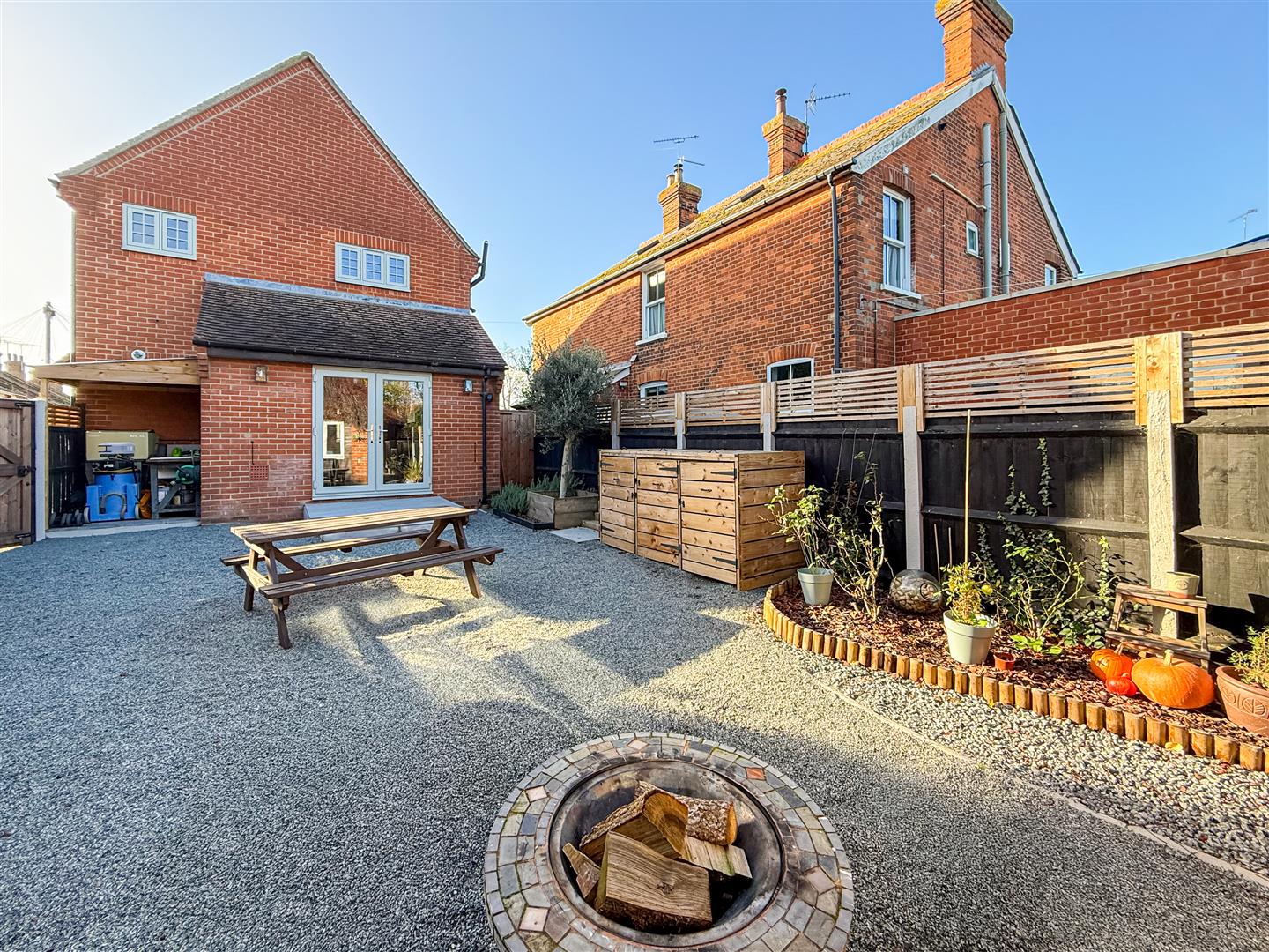 The frontage is nice and private with a five bar and pedestrian gated entrance and close board fenced boundary. The driveway has been neatly laid to shingle and offers parking for multiple vehicles.