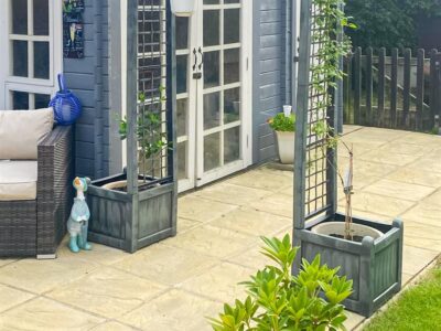 The main part of the garden is neatly laid to lawn with established borders and planting and a summer house with a patio/ veranda to the front and close board fenced boundaries.