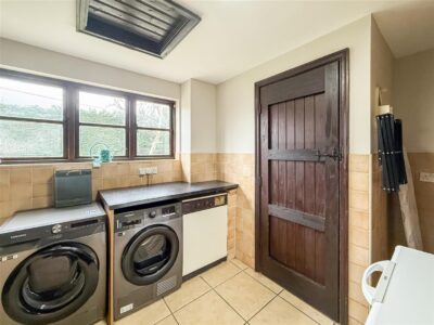 Matching eye level units to the kitchen, tiled flooring and part tiled walls, plumbing for washing machine and tumble dryer, floor mounted oil boiler. Door to the cloakroom/w/c, hallway and rear.