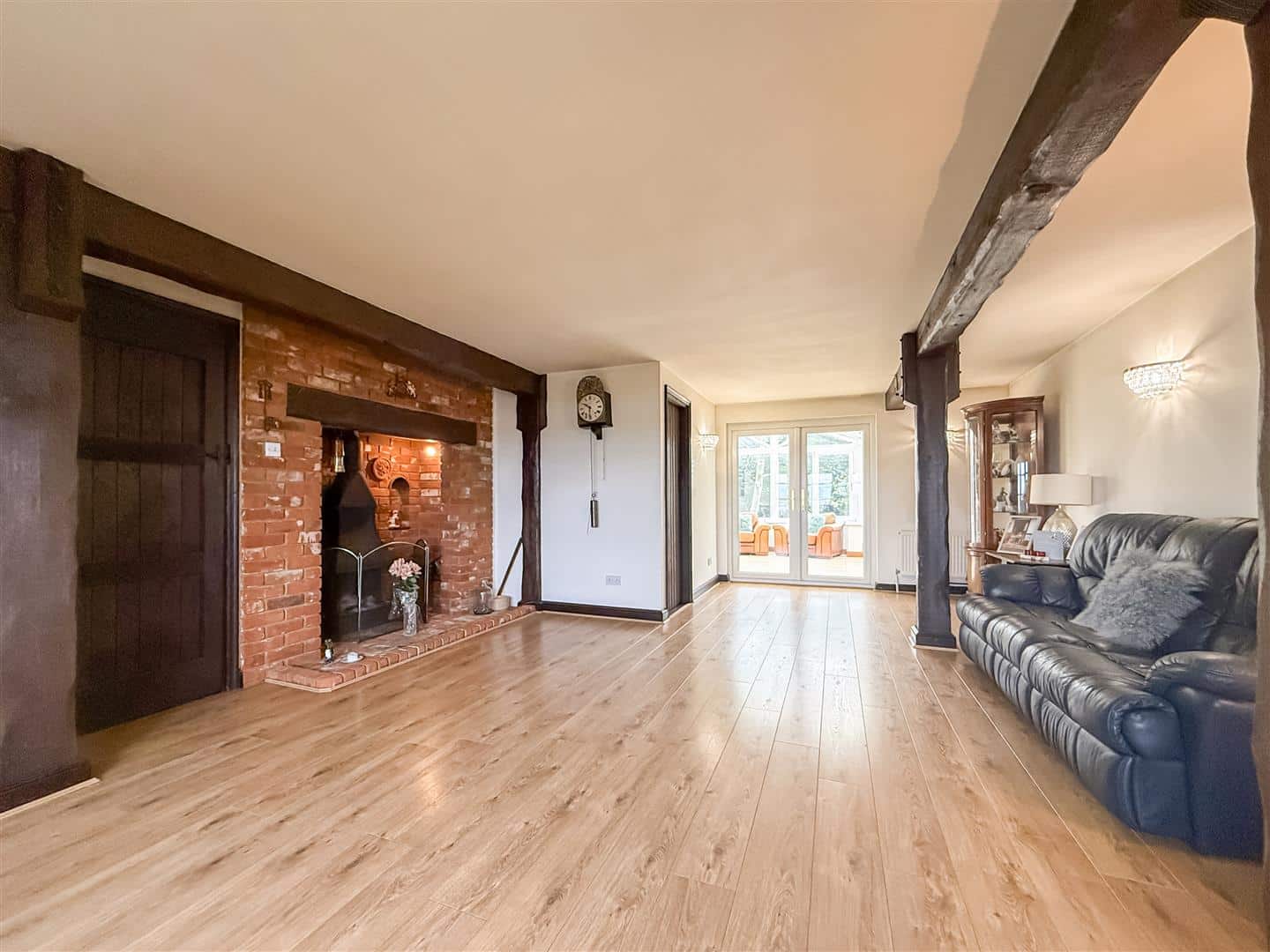 This is a gorgeous size room with double glazed windows to the front, looking out on to the Blackwater Estuary. Exposed wall and collar beams and a very impressive Inglenook style brick fireplace with cast iron hood, three radiators, television point and double glazed double doors to the conservatory.