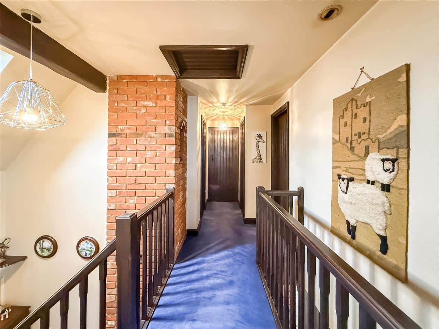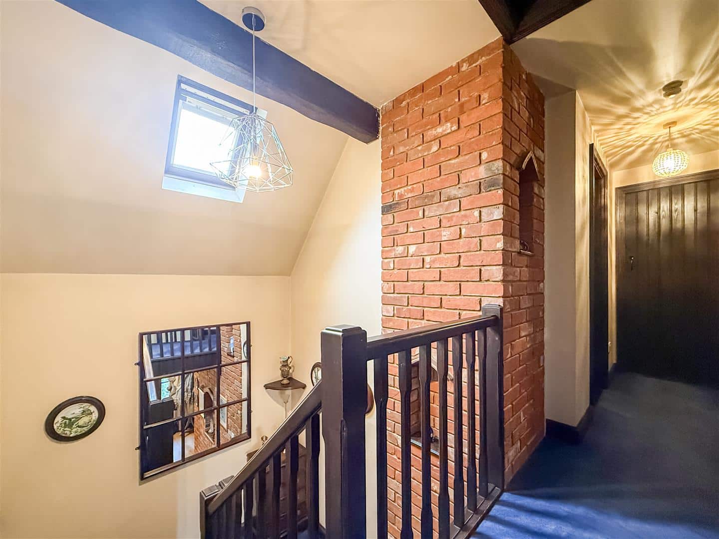 Part exposed brickwork, loft access and velux style window to the rear.