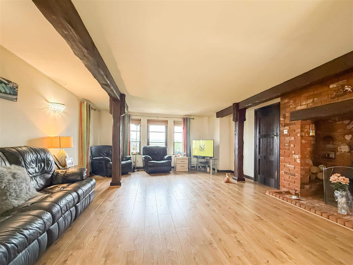 A super size room, great for entraining or family gatherings, exposed collar and beams, double glazed windows to the front and side, radiator.