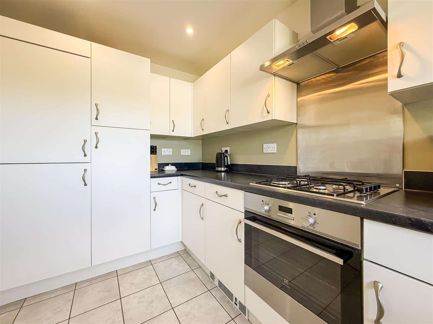 All the rooms throughout the property are in lovely order and the kitchen has a nice outlook onto the greensward. Tiled flooring and a range of modern white fronted eye level units, matching base units and drawers with complimentary work surfaces over. Integrated fridge/freezer and washing machine, inset gas stainless steel hob with stainless steel extractor above and built in oven. One and a half stainless steel sink and a concealed wall mounted boiler(not tested). and a double glazed window to the front.