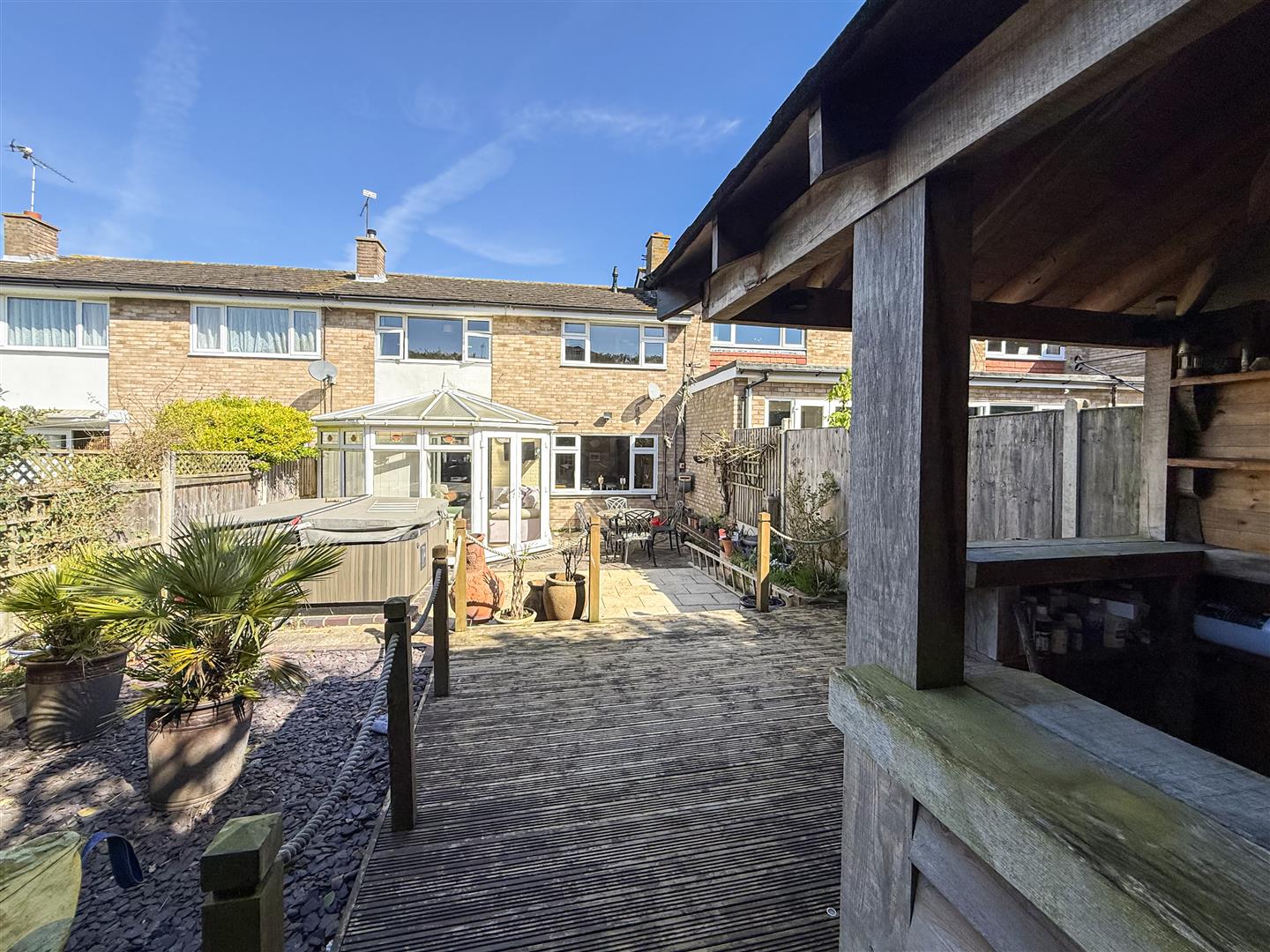 If you enjoy the sun then this south facing suntrap of a garden, will definitely be for you. Commencing with split level patio/entertaining areas, decked area and a space for hot tub (CAN BE negotiated separately) some planting, power sockets and close board fenced boundaries. Gate to the rear to a pathway.