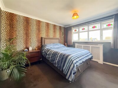 All the bedrooms are good sizes and this room has triple mirrored wardrobes to one wall. Double glazed window to the front with partial field views, television point, wood effect laminate flooring and radiator.