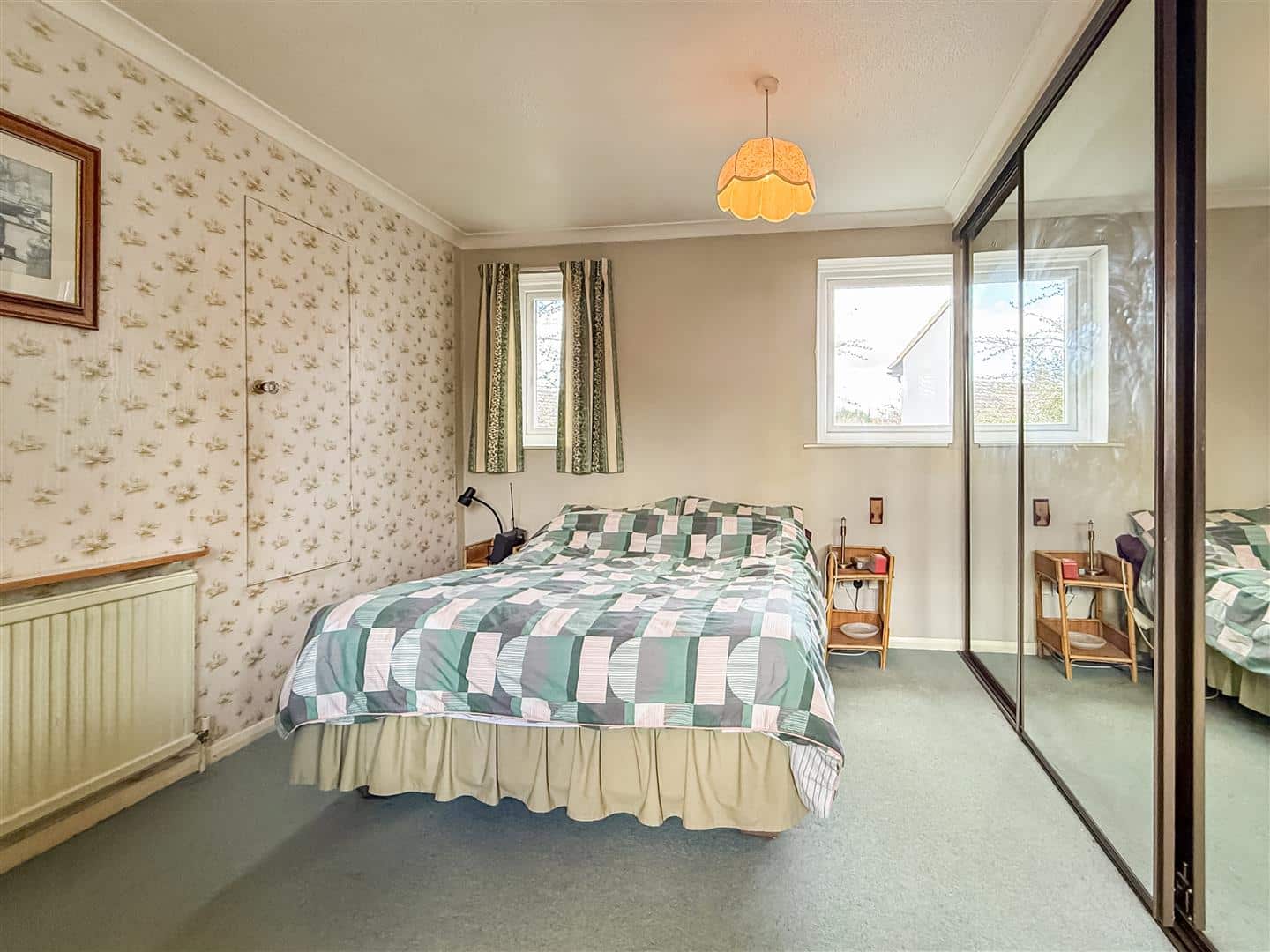 Three triple fitted mirrored wardrobes to one wall, built in cupboard, two double glazed windows to the front and radiator.
