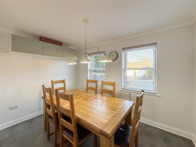 Plenty of room here for a good size family table and chairs and to entertain. Double glazed dual sash style windows to the front, radiator and three fitted eye level cupboards.