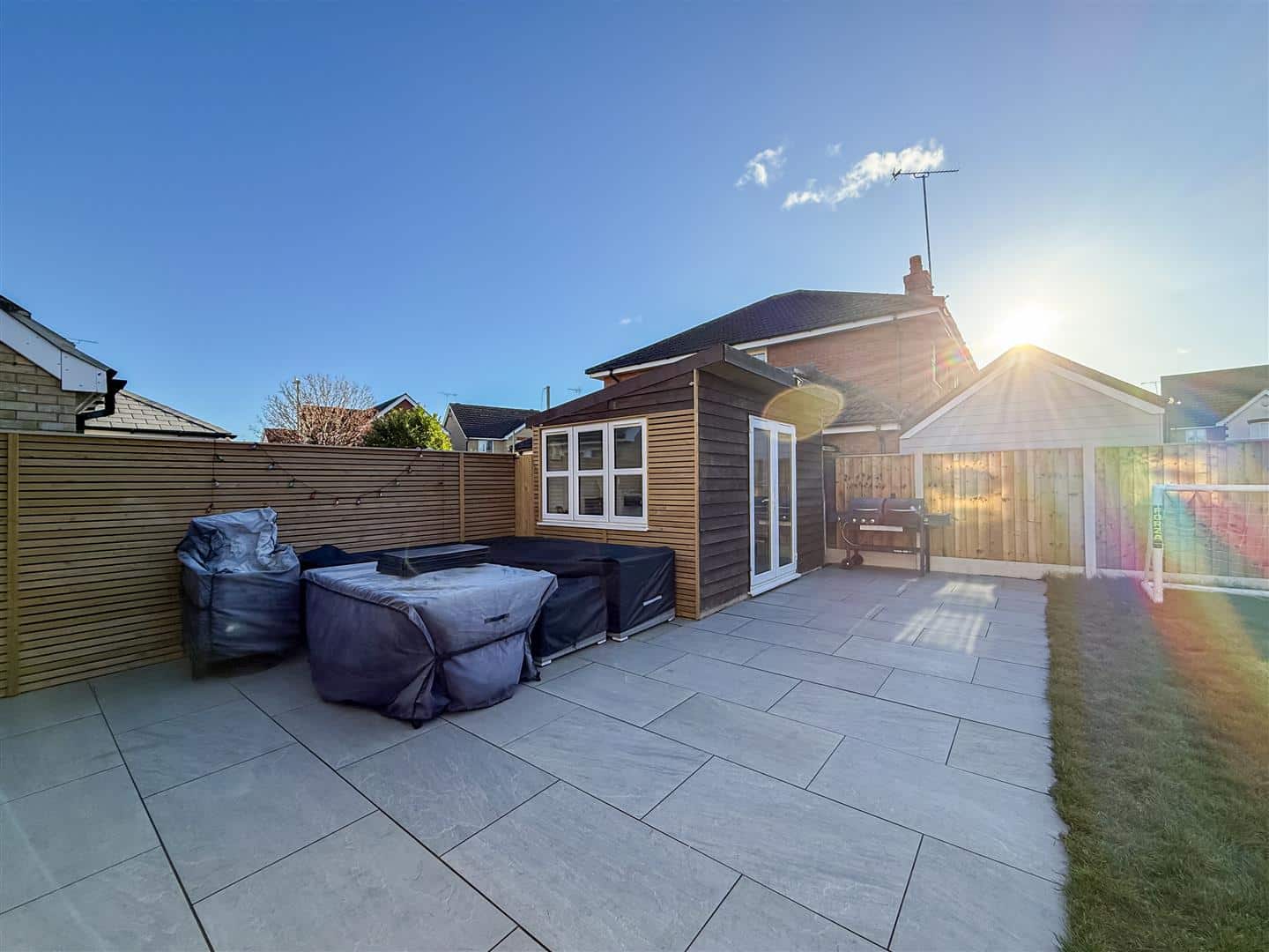 The garden is a good size with a quality and substantial laid patio/entertaining area, this is to the rear of the property and extends to one side. The remaining garden is laid to lawn with close board fenced boundaries, water tap and a side access and gate to the front. Rear courtesy door to the garage and a 11'4 x 7'4 outside office with power,light and electric heater.