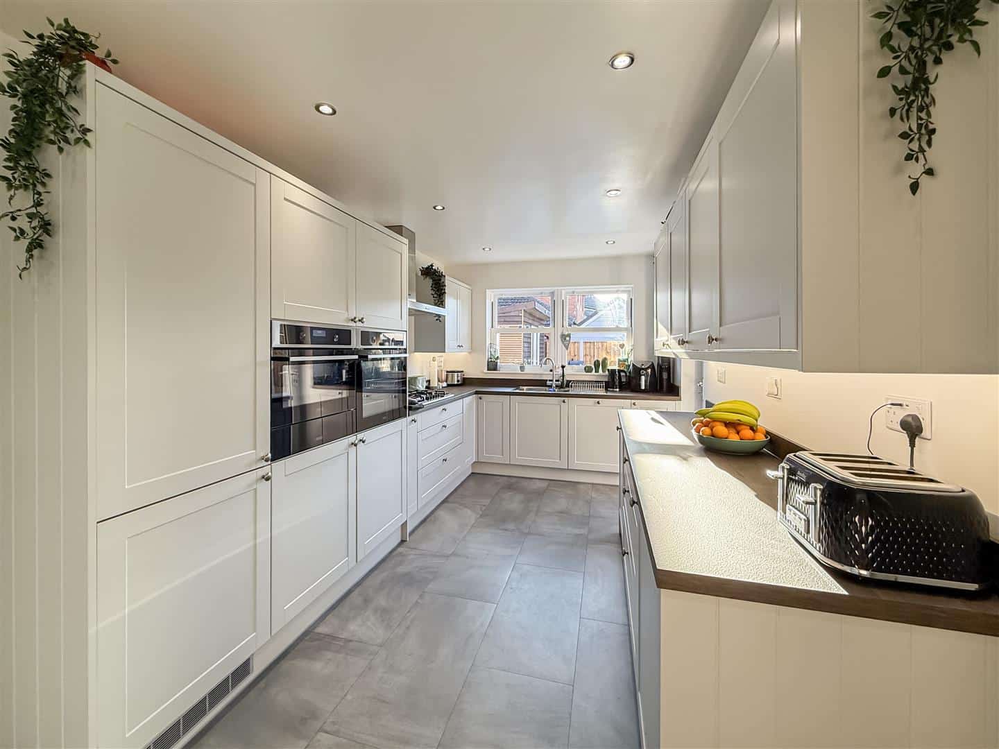 The kitchen is an excellent size and was replaced in October 2023 with a range of quality fitted grey eye level units, under lighting and matching base units, drawers and wood effect work surfaces. Inset five ring gas hob with above stainless steel extractor, built in micro wave oven and warming drawer, matching built in fan oven, integrated fridge/freezer, dish washer and a one and a half stainless steel sink with water softener Internal door to the garage, double glazed door to the side, double glazed window to the rear and radiator.