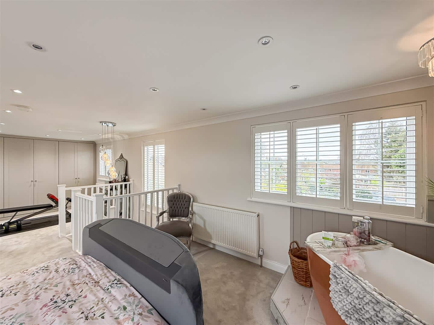 POTENTIAL 5TH BEDROOM/ Dressing area this is a superb space and works particularly as part of the suite, a large range of wardrobes to one wall. Two velux style windows to the front, double glazed window to the rear with white shutter/blind and radiator.