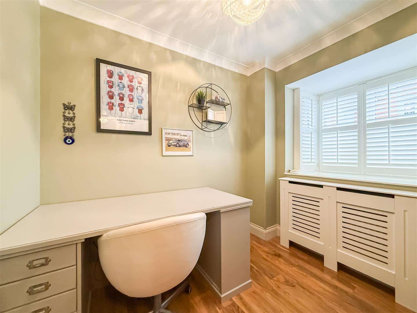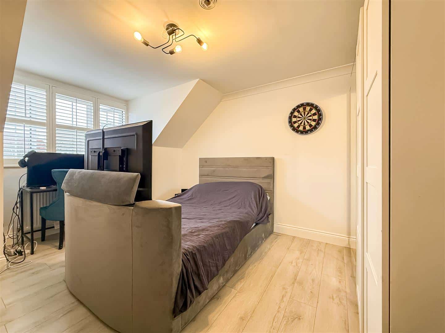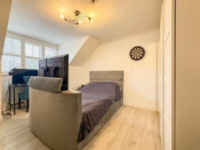 As we have mentioned all the bedrooms are doubles and again plenty of space for bedroom furniture. Double glazed window to the front with white/shutter blind, wood effect flooring and radiator.