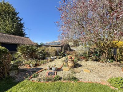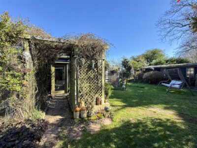 The garden to the rear is landscaped with many mature shrubs, trees and flowers and fruit trees and continues to a neatly laid lawn which extends and wraps around the side of the property, again with lots of established planting. The plot and gardens continue to a large garden allotment area with a good size garden shed and adjacent chicken run and a gate leading in to the neighbouring field.