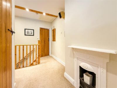 Cast iron fireplace, smooth plastered ceiling with down lighting, linen/airing cupboard.