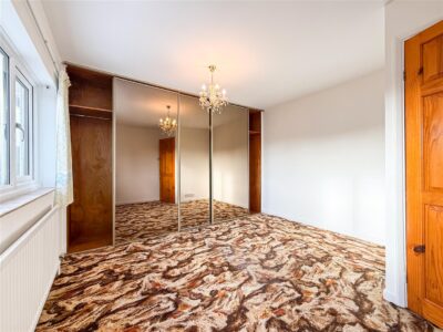 An excellent size double room with sliding mirror fronted fitted wardrobes to one wall, radiator and a double glazed window to the rear.