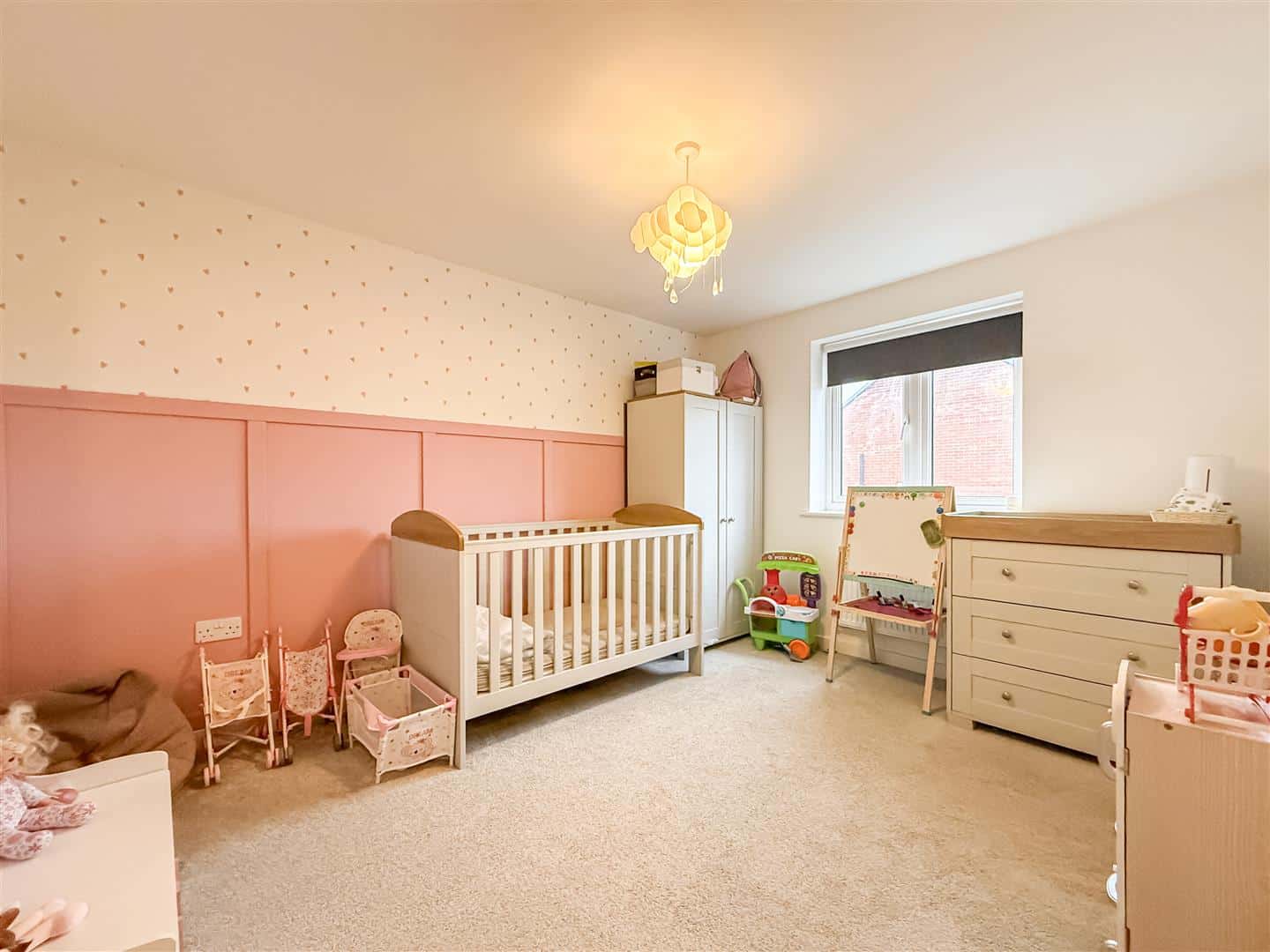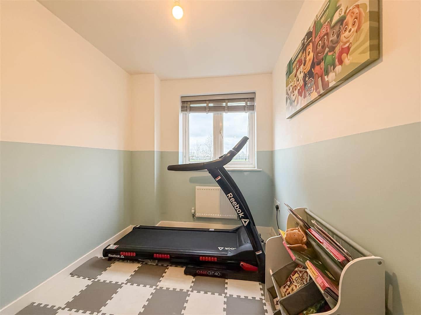 Double glazed window to the front, feature panelled wall and radiator.