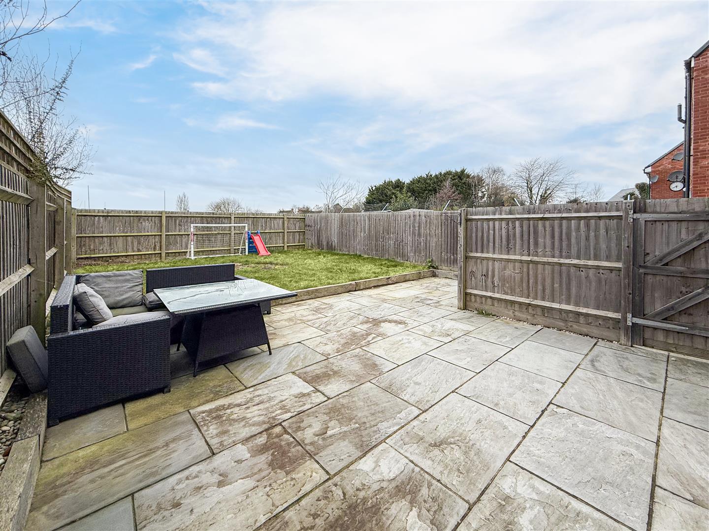 - Rear garden backing playing fields.