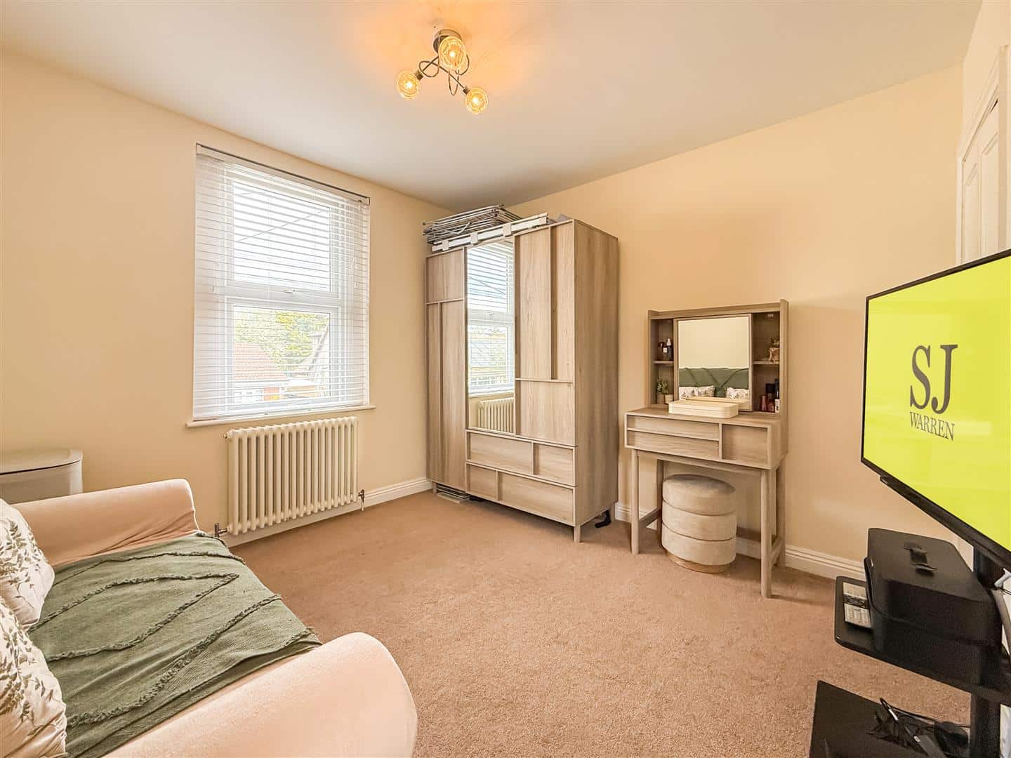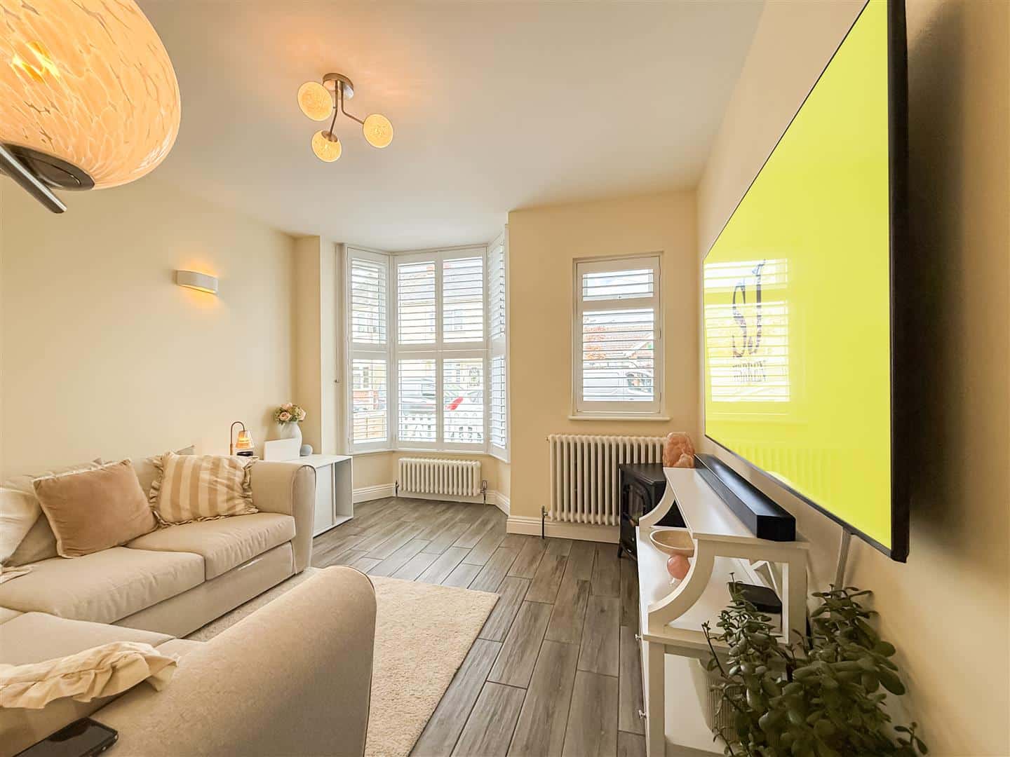 Once again bags of light in this room from the two double glazed windows to the front, one of which is a bay window with quality white fitted shutter/blinds Television point, two column style radiators.