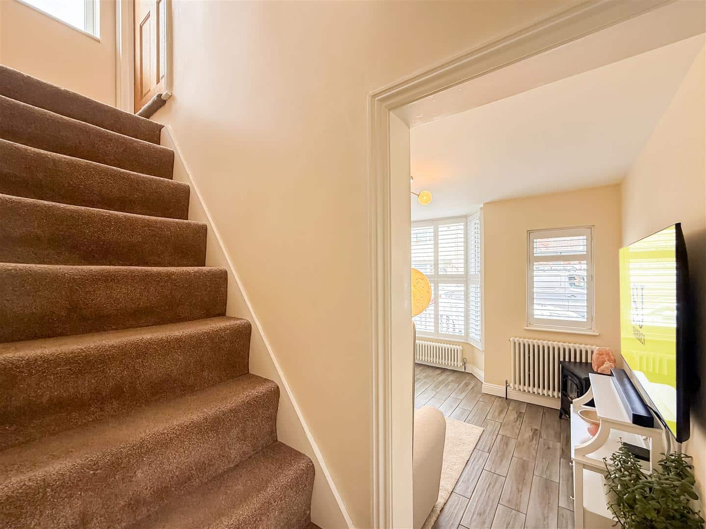 The inner hallway has tiled flooring that also runs into the dining room and lounge, stirs to the first floor landing and a column style radiator.