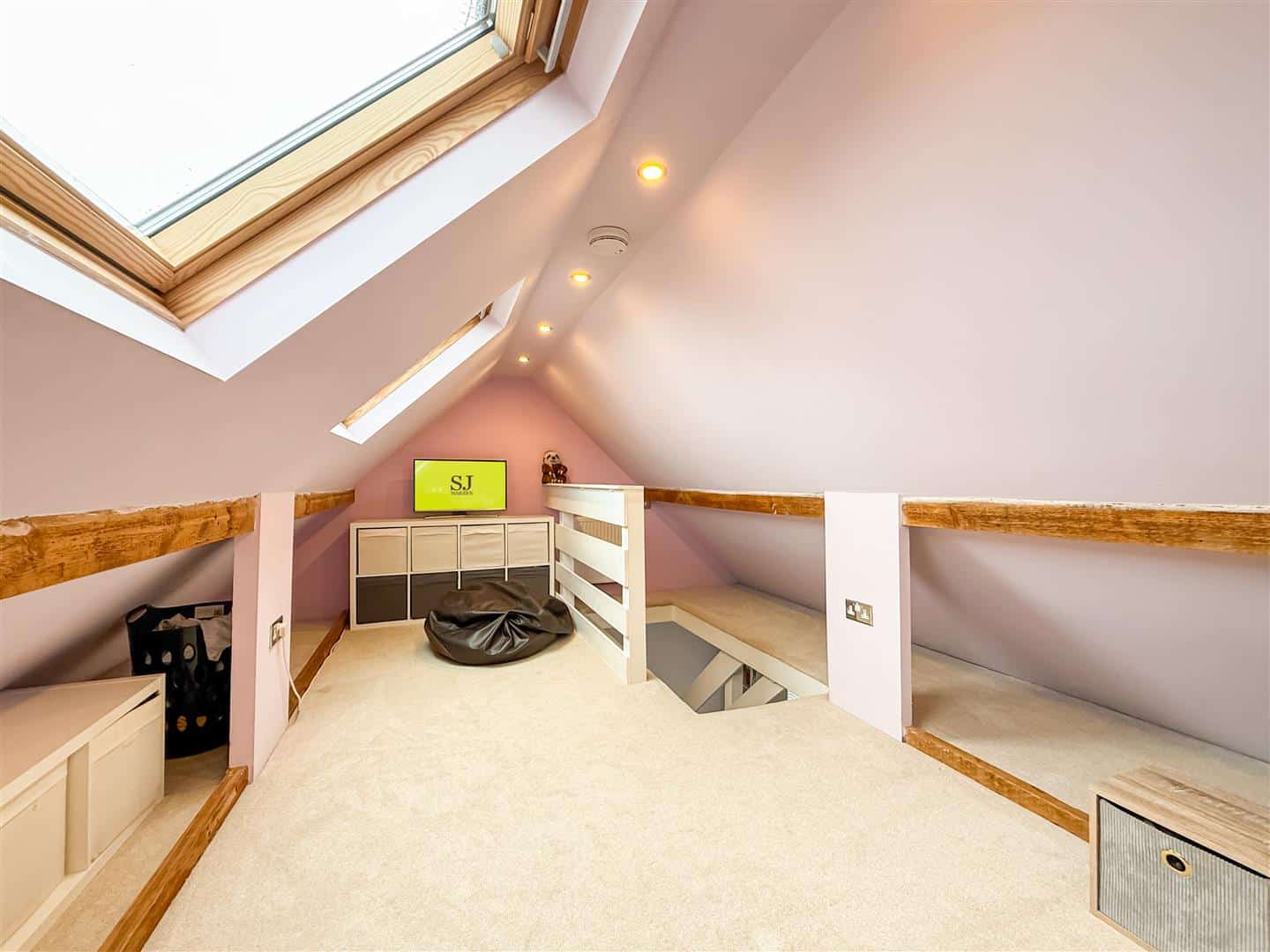 This is a totally versatile room, ideal bedroom three but we have made it clear, there is also a cot room/study and a good size loft space with staircase and velux windows.