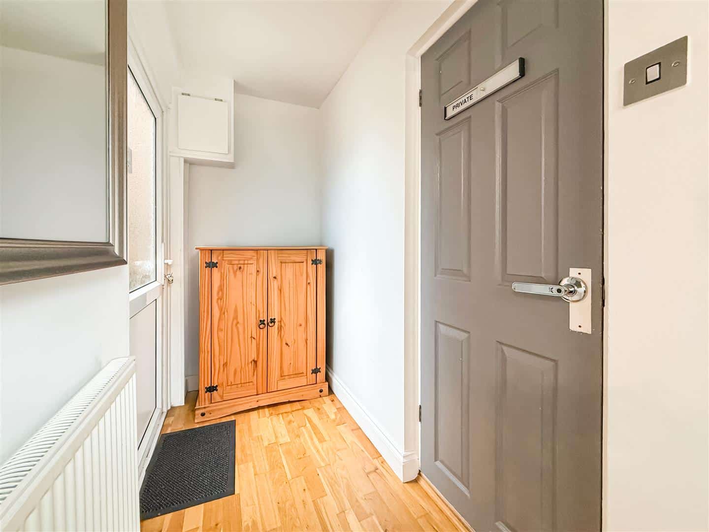 Double glazed entrance door to the hallway, this has solid oak flooring a useful understairs storage cupboard, stairs to the first. floor and radaiator.