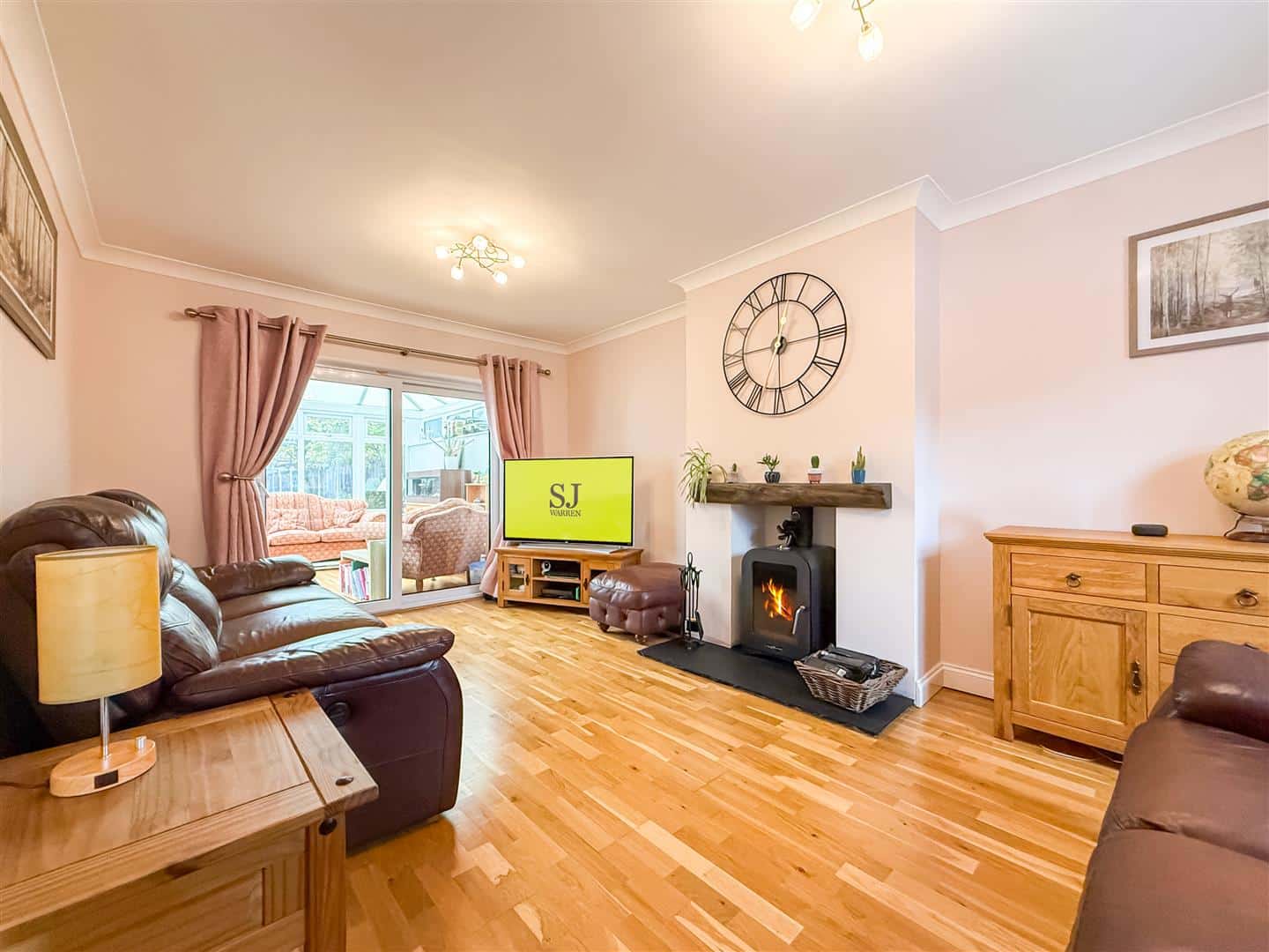 The lounge is very nicely presented, a theme that echoes throughout the home and is made all the more cosier, by the open fireplace with cast iron wood burner. Television point, radiator, double glazed window to the front and double glazed patio doors to the conservatory.