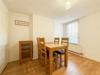 This a good size room, plenty of space for a table and chairs. Wood effect laminate flooring, radiator, under stairs storage cupboard and a double glazed window to the rear.