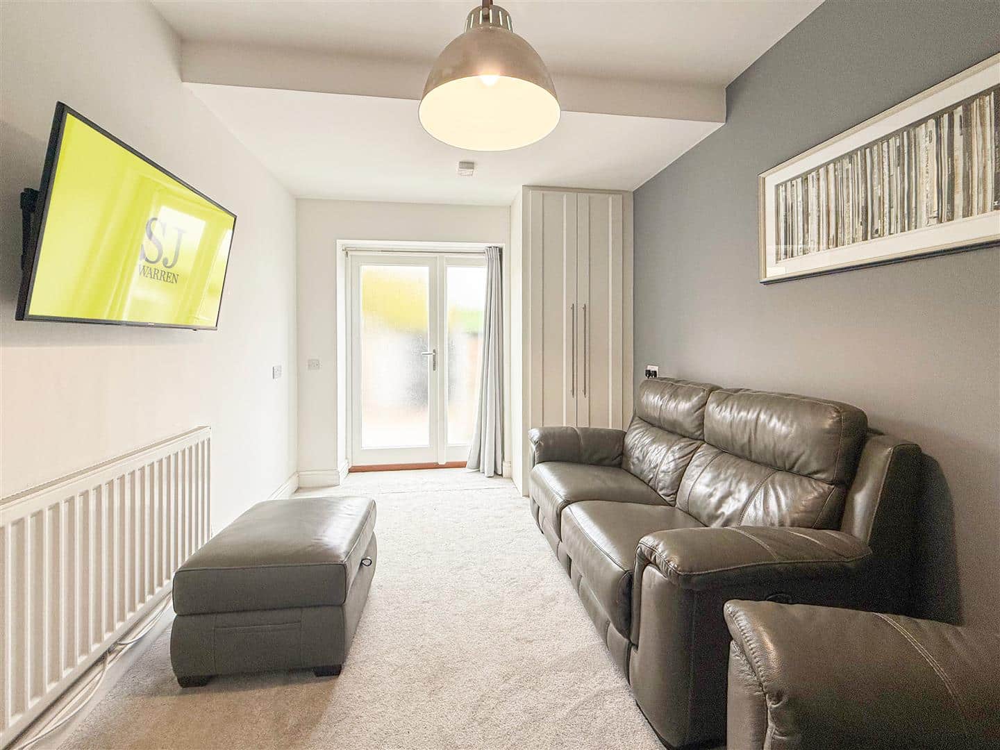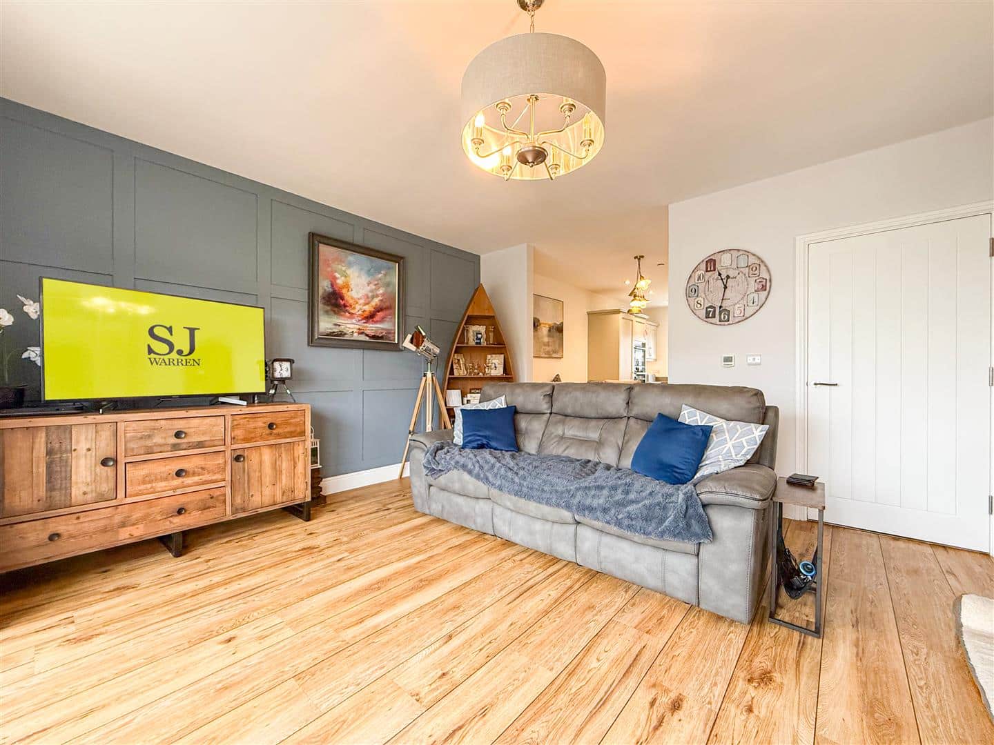 Plenty of space to cook and entertain here, with the kitchen having a range of modern grey eye level units, matching base units and drawers with quality Quartz work tops and splash backs. Inset one and a half sink, inset electric induction hob with above extractor, built in self cleaning Neff oven and grill, integral dish washer and fridge/freezer. Tiled flooring, down lighting and a double glazed window to the fornt.