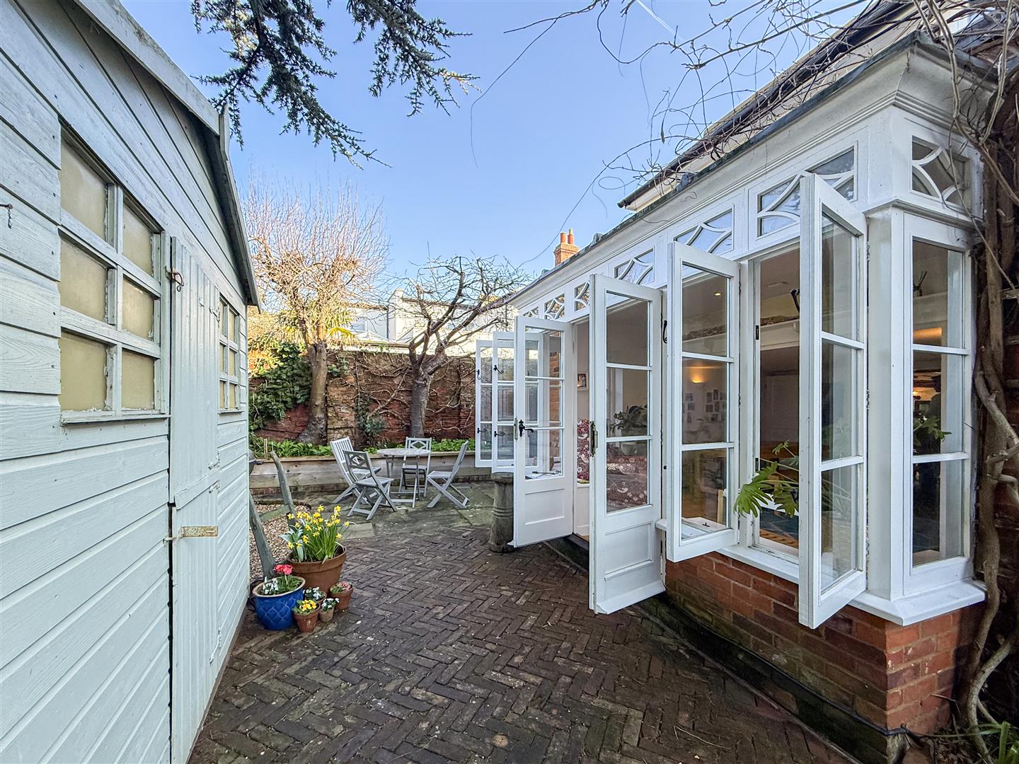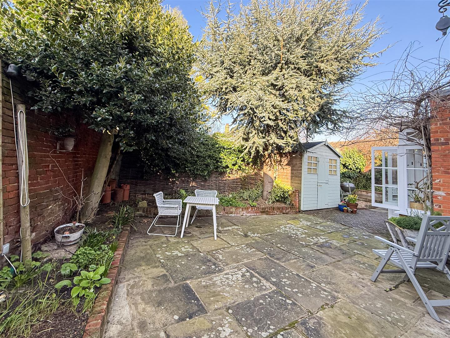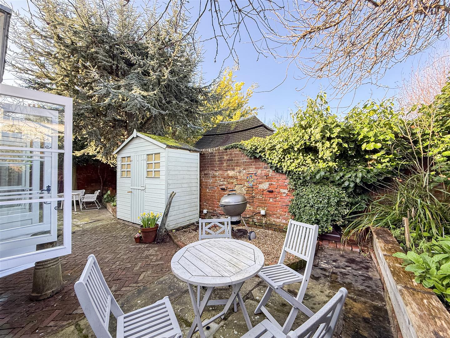 A beautifully secluded walled garden, thoughtfully set out with some mature trees, magnificent wisteria, established planting and curated borders and piped watering system together with outside electrical sockets. This private outdoor sanctuary offers a wonderful setting for both entertaining and relaxation, with designed seating areas framed by seasonal colour and greenery. Ideal Al Fresco dining, summer gatherings or just a quiet retreat.