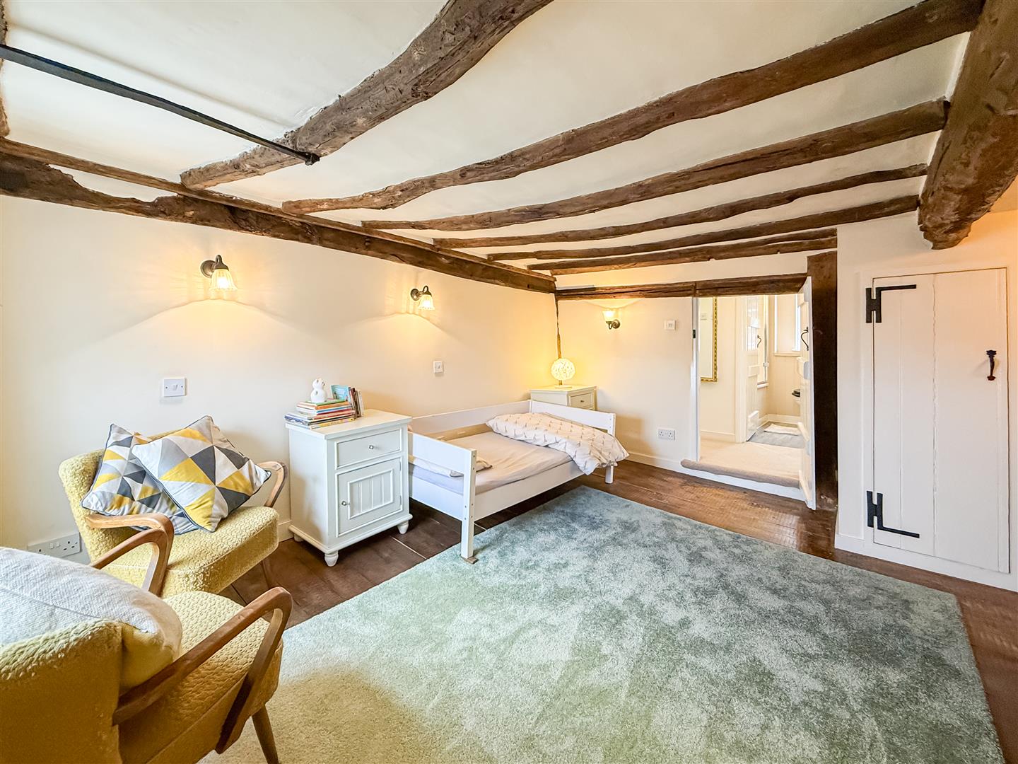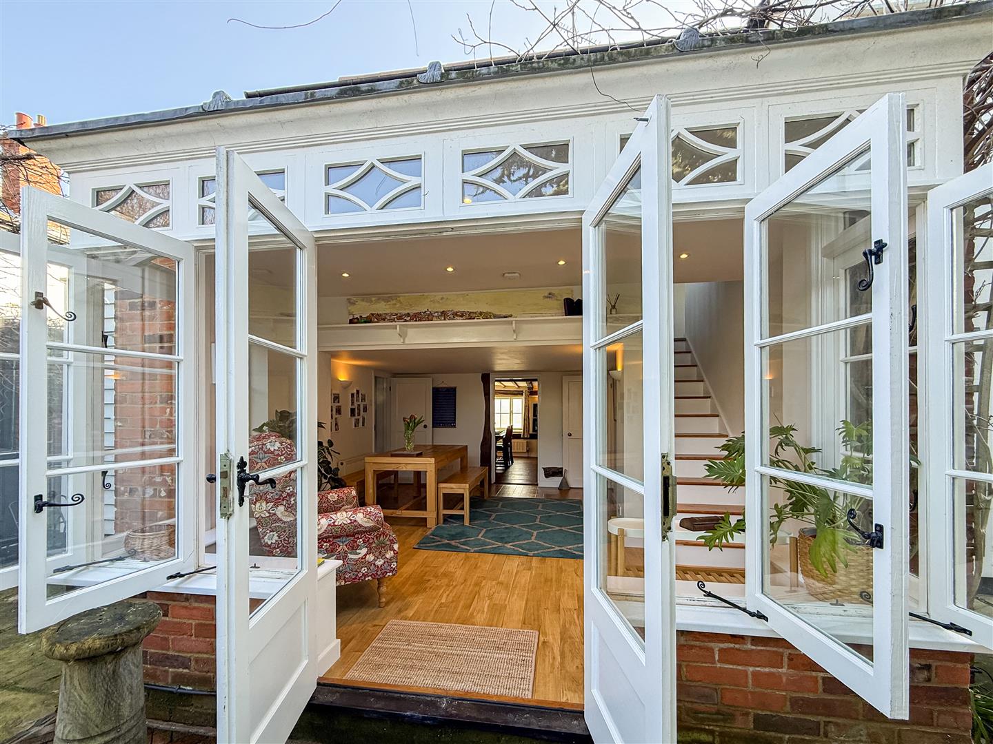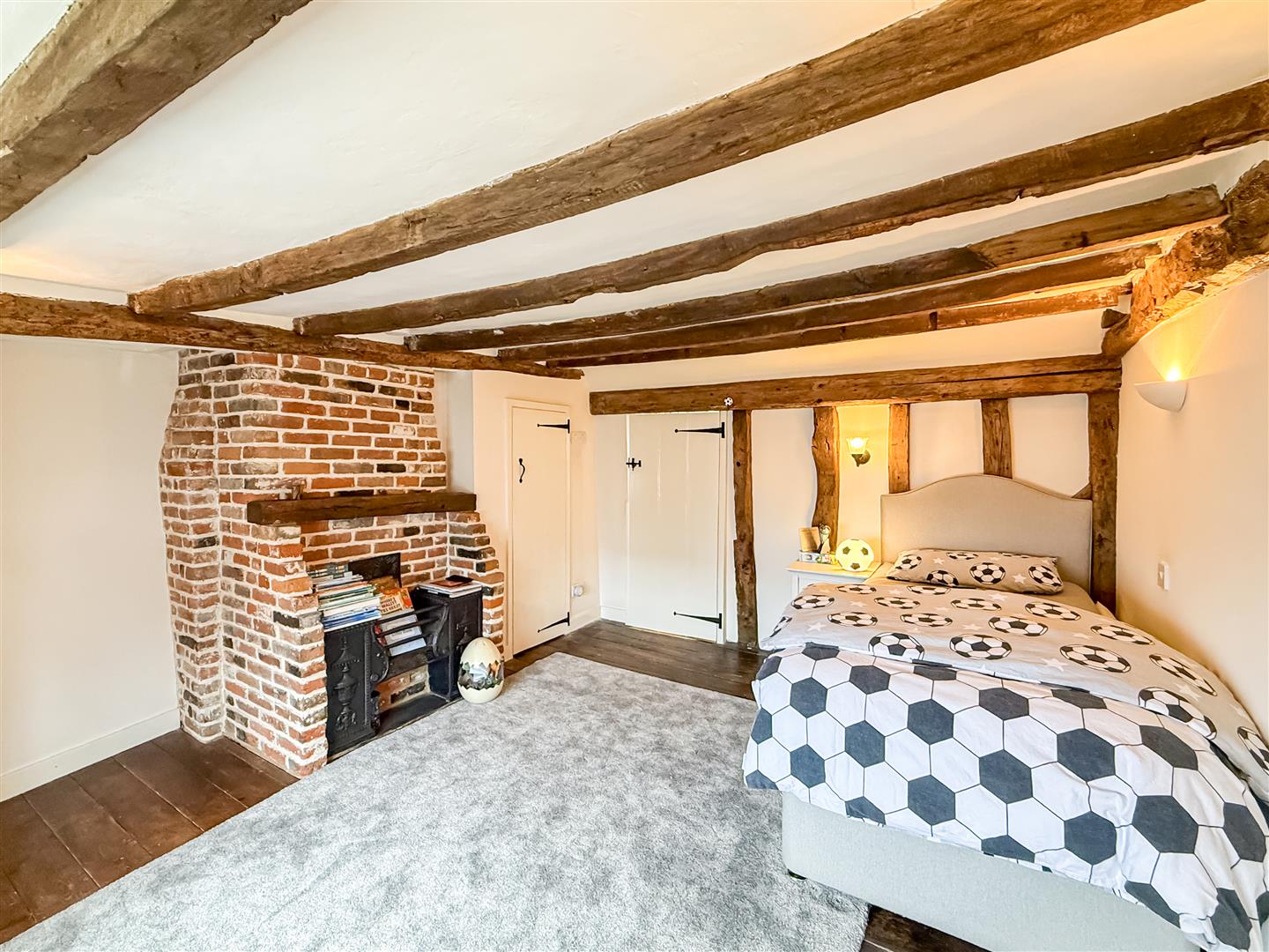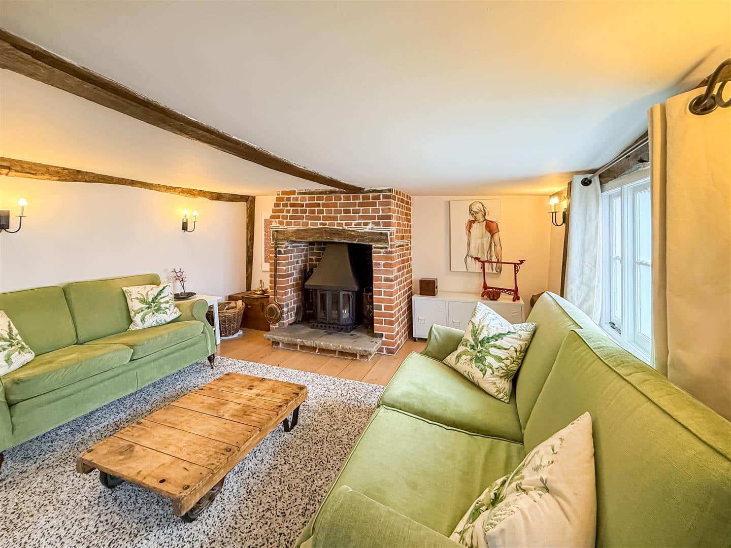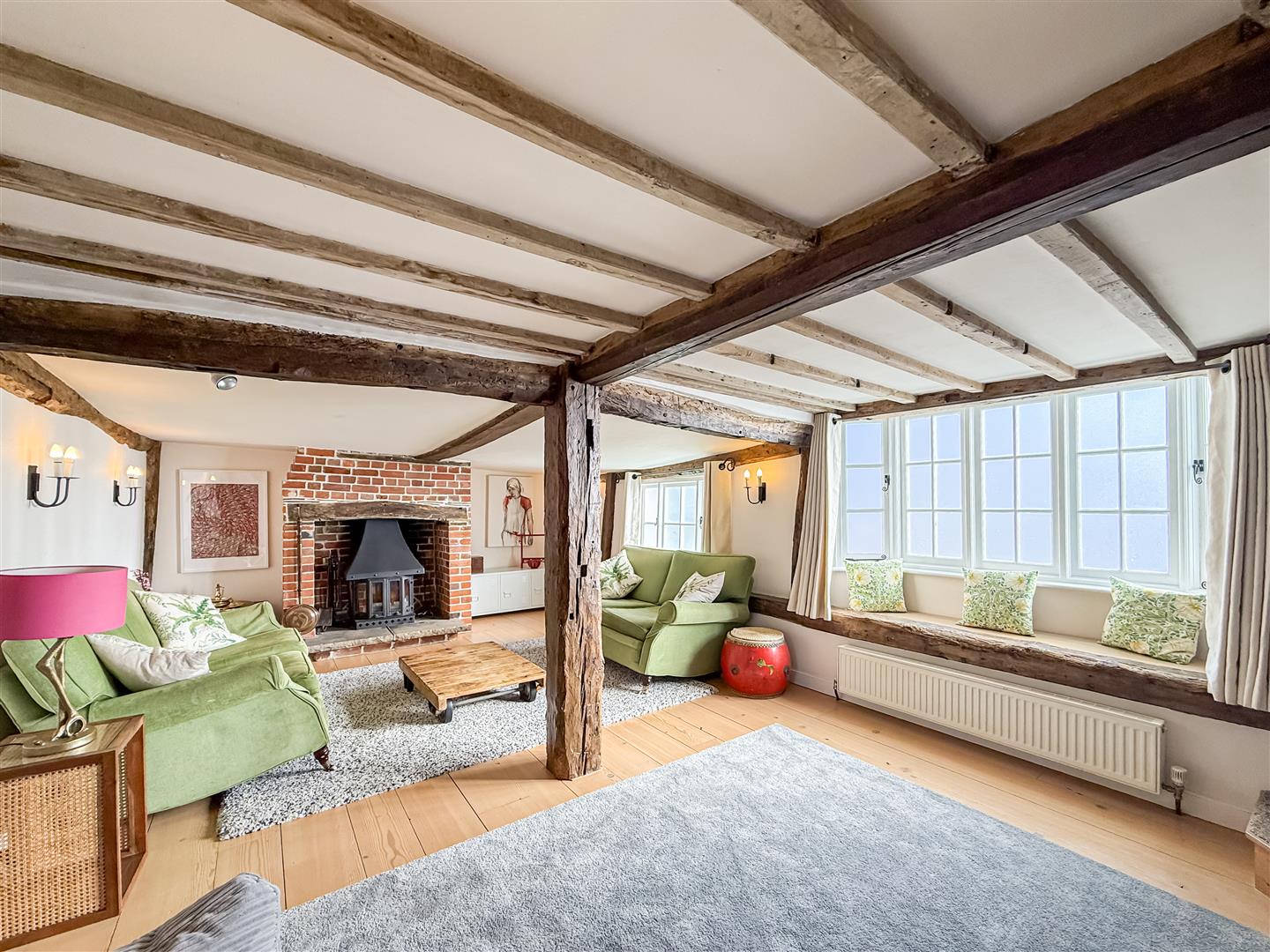 Oak wall and ceiling beams many of which are hand hewn, open fireplaces and exposed floorboards are just the start of the many original features. You can even find fragments of newspapers used as wallpaper lining from 1857! The original historic arrangement of rooms to the front of the house have been retained whilst now being linked by the kitchen and summer lounge on the ground floor and gallery/reading area on the first floor.