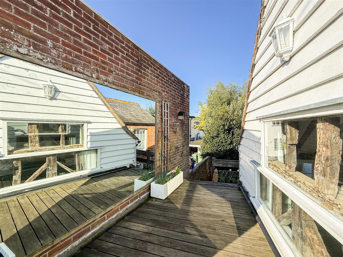 - Walled rear garden. Stairs up to split level veranda.