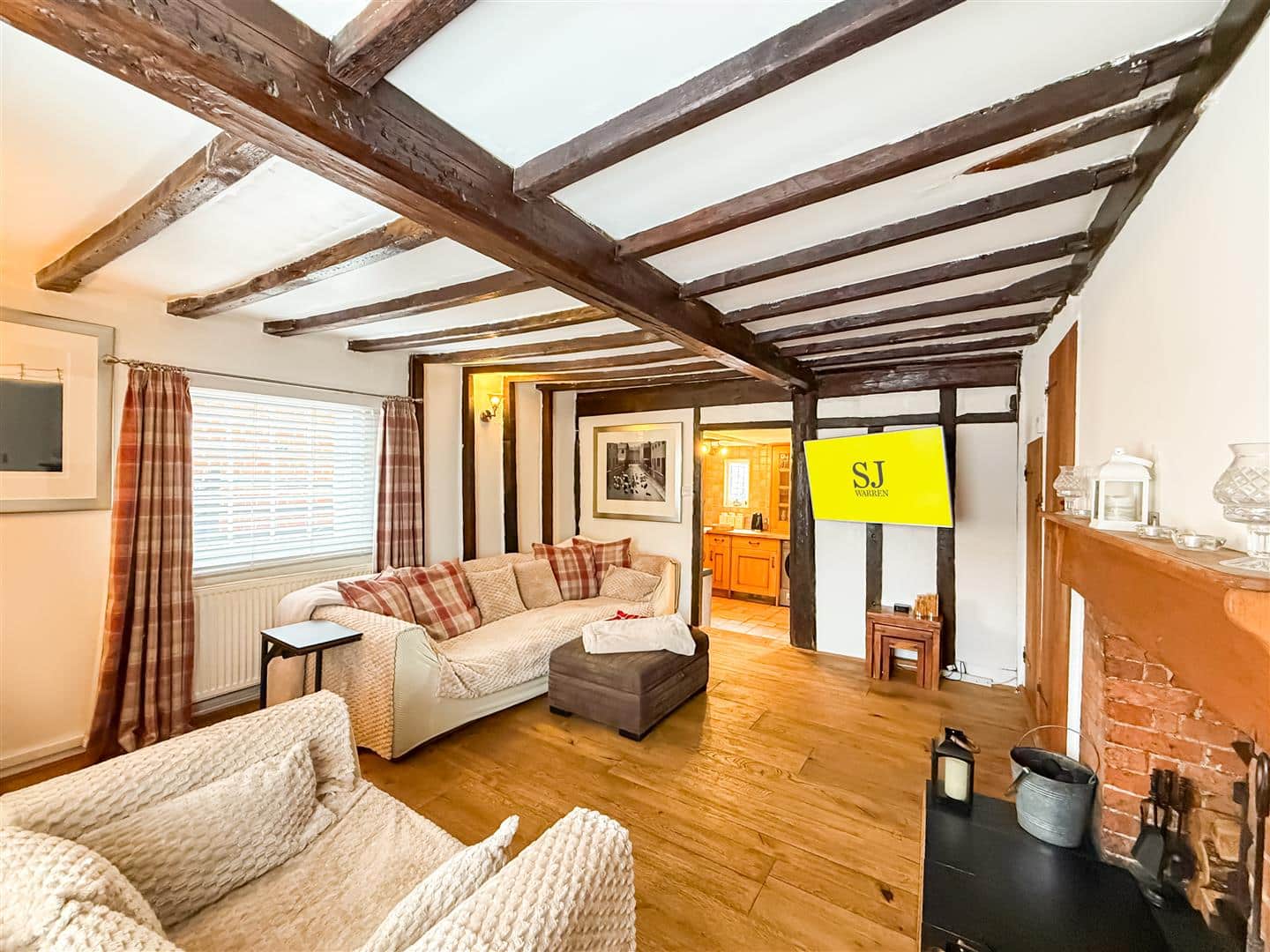 The property throughout screams character with so many original features, exposed original ceiling and wall beams and a cosy brick open fireplace with wood burner. Built in under stairs storage cupboard, solid oak flooring, television point, radiator and sash windows to the front and side.
