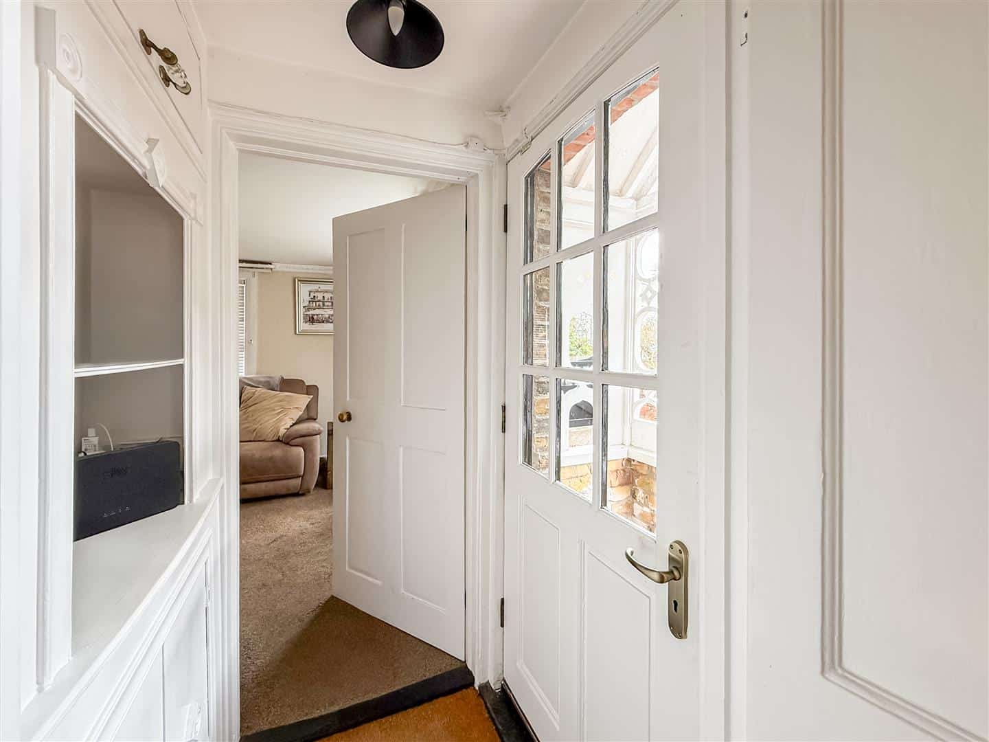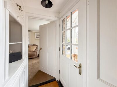 PLEASE NOTE we have mentioned the property was originally two cottages and therefore has two twin pitched roof porches this one leading into the hallway which has fitted cupboards and shelving to the facing wall.