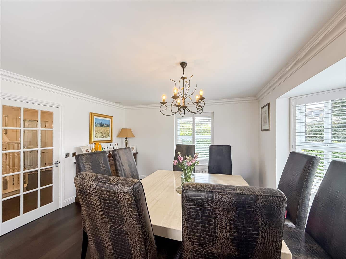 This is an excellent size room made for family gathering and entertaining. Double glazed bay window bay window to the front with fitted white shutter/blinds, double glazed window to the side with white/shutter blind, two radiators and audio ceiling speaker.