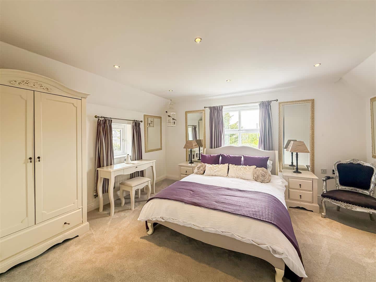 I cannot stress enough how bright and airy all the rooms are and this a fine example, with double glazed windows to the front, side and double glazed French doors with side screen windows overlooking the landscaped gardens. Sandstone fireplace and surround with cast iron wood burner, television point, two radiators both with decorative covers.