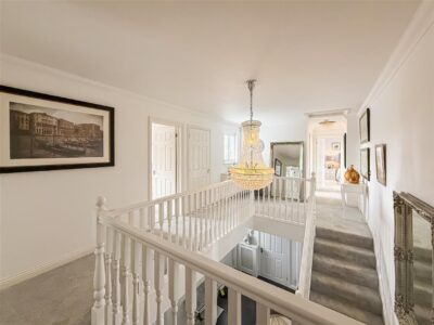 The first floor has a lovely size gallery landing, a principal bedroom and guest room with en-suites and three further excellent size double bedrooms and a family bathroom.