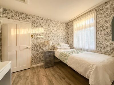 Both bedrooms are good sizes and this room has a built in cupboard/wardrobe, radiator, down lighting and a double glazed window to the front.